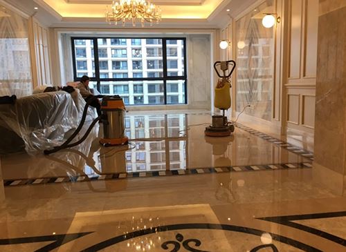 大理石翻新工艺流程:1、破损修补与中缝补胶:采用先进设备精确处理石材表面的破损及中缝,通过重新切割减小缝隙宽度差,并使用与石材颜色相近的专用云石胶进行修补,实现无缝美观效果。2、剪口位精细打磨:利用升级后的专用剪口研磨片,对石材剪口位进行重点打磨,确保其与石材水平面完美融合,提升整体平整度。3、多阶段研磨抛光:遵循由粗到细的原则,选用水磨片进行多阶段研磨,直至地面光滑如镜,石材晶粒清晰可见,展现石材自然之美。4、全面防护处理:应用专业石材养护剂,深入石材内部形成保护层,有效防水、防污、防腐,并增强石材抗风化能力,延长使用寿命。5、结晶处理:采用针对性强的结晶粉或药剂,结合专业设备的高温与重压作用,通过物理与化学双重反应,在石材表面形成一层清澈、坚硬、致密的保护层,显著提升石材光泽度与硬度,为后续保养奠定坚实基础。