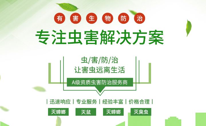 服务项目1、鼠类防治2、爬虫类防治(蟑螂、蚂蚁、臭虫、跳蚤、螨虫、蜈蚣等)3、飞虫类防治(苍蝇、蚊子、马蜂等)4、白蚁防治(建筑物、河堤等场所)5、消毒杀菌、除臭味、(医院、酒店、社区)6、其他害虫(可上门鉴定)