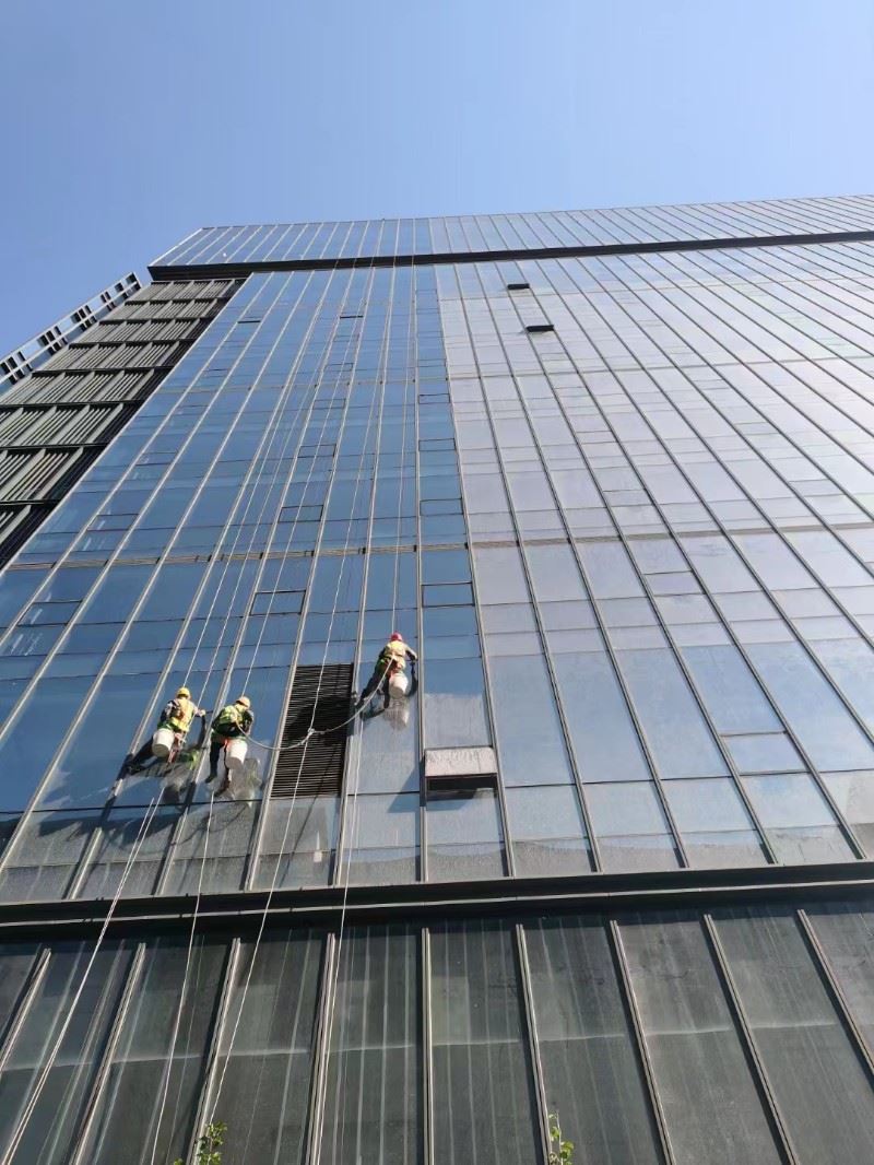 【外墙清洗】根据不同建筑结构与墙面材质,针对污垢与物体表面结合力,选用专业外墙清洗剂和玻璃清洁剂,使用吊篮或登山绳索施工,纯玻璃幕墙、铝板墙面及光面石材外立面可用专业玻璃刮子进行清洁,毛面石材、真石漆墙面及瓷砖墙面用高压水泵配合专用清洗剂清洁。