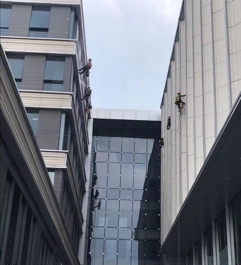 东莞卓高环境工程有限公司施工范围有玻璃幕墙清洗、玻璃幕墙保洁、外墙清洗、外墙保洁、大楼保洁、办公楼外墙清洗、厂房彩钢瓦清洗、铝塑板清洗、高层外墙清洗、写字楼玻璃清洗、高楼外墙清洗、外墙板瓷砖清洗、蜘蛛人清洗大楼等服务,我们拥有一支经验丰富的高空作业团队,为您提供一站式的外墙清洗服务,24小时服务,欢迎来电咨询!