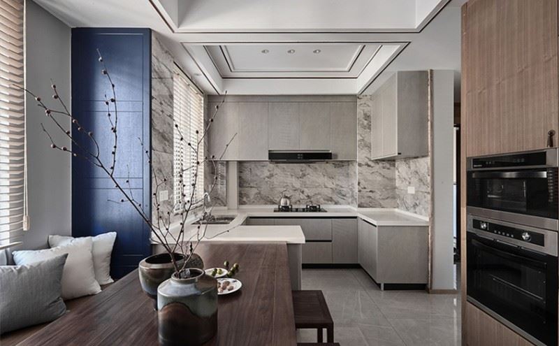 很多人习惯上认为客厅和餐厅必须分属两个空间,可是在小户型中,这样区分势必导致两个独立空间都狭小局促,影响舒适度。采用客餐厅一体设计,将两个活动区集中到一起,动静分区,减少干扰;两区合一,整体空间更为开阔大气,富有层次感;减少隔断,利于室内采光通风;减少交通走道,让业主享受更大的生活空间。