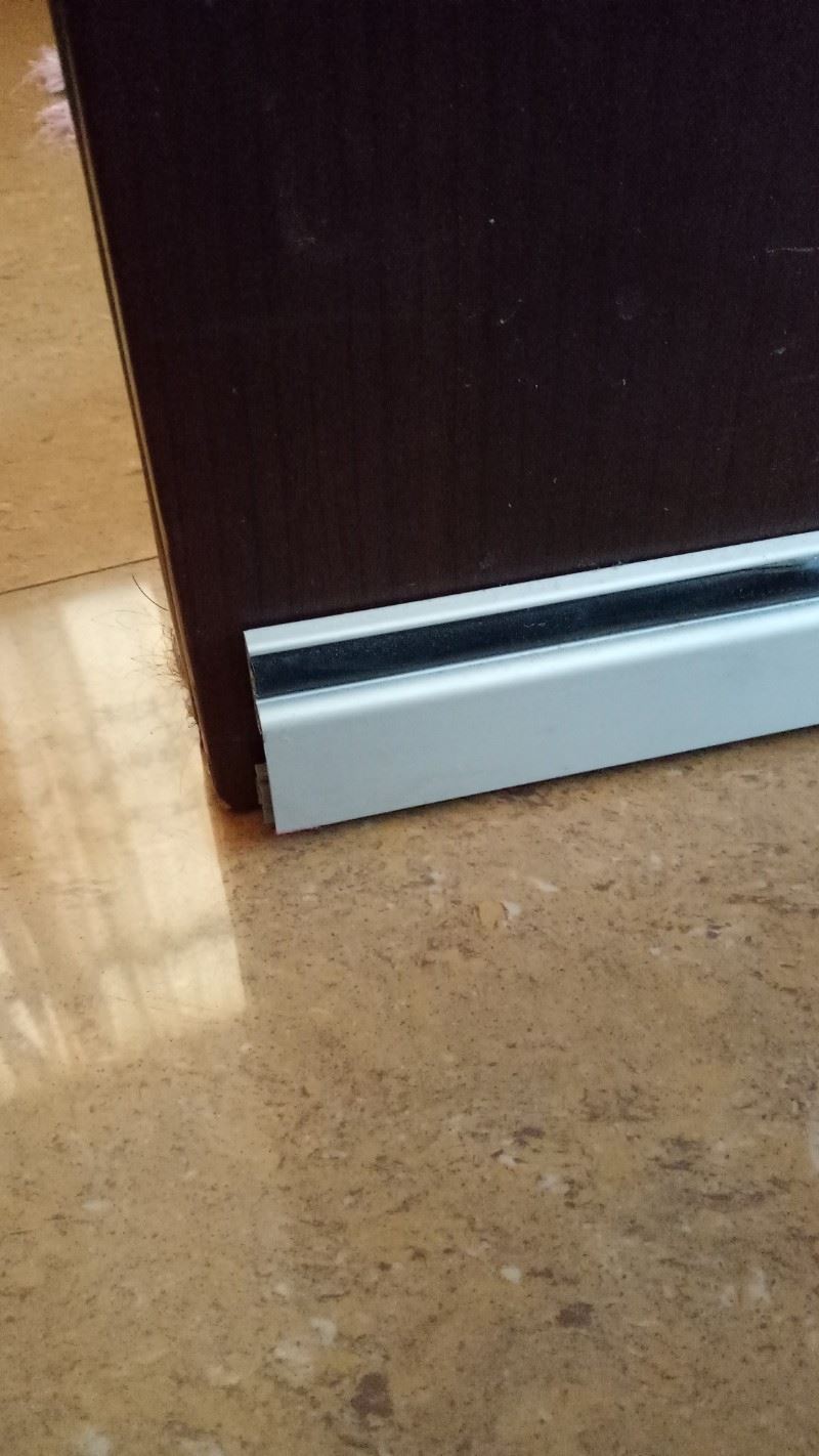 现在市面用的房门,卧室门等都不带门槛,门扇与地面有一定的空隙,造成漏音,噪音影响生活质量。门板大部分也是空心门,或者是木渣压制门,密度普遍低,加上大部分室配套的内嵌式密封条,由于材质硬,无法有效的根据门结构起到很好的密封作用。无法有效阻挡声音,所以,想要门隔音,就需要对门缝进行密封处理,门板贴隔音材料提高门密度。绿静包覆式软性密封条因其良好的柔韧性,使得门和门边能更加紧密的结合,达到更好的密封性。使门整体的隔音性能有所提高,无论是门侧面缝隙,还是门顶、门底缝隙,都能有效贴合,达到密封隔音。而且都是自带背胶,安装十分方便。对于大面积隔音改造,绝对是一个理想而又省事的办法。该密封条采用用进口加强型尼龙外包,内填充纳米聚氨酯柔性棉,背面附有强力背胶, 施工方便, 不易脱落。安装的时候,一般安装在门内侧,密封条贴近地面,然后撕开背胶固定在门扇上。门开关,没有地面摩擦噪音,很好的挡住缝隙,防止暖气外溢、防虫入内、同时起到隔音隔光之功能,一举多得。
