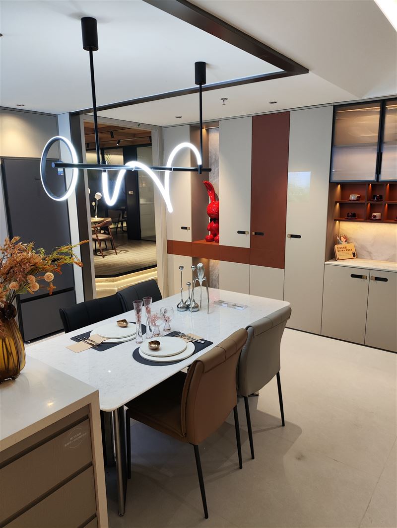 全空间定制精准适配:覆盖卧室、厨房、客餐厅、书房、儿童房、阳台、卫浴等全场景,功能分区精准,适配多元场景。例如卧室支持挂放、叠放、抽屉、裤架等分区收纳,床头柜、梳妆台可定制尺寸与风格;厨房适配开放式、封闭式、岛台等户型,搭配功能拉篮、高柜联动拉篮提升收纳效率。配套大家居一站式配齐:木门、地板、木饰面与定制柜同材质同花色,实现墙、柜、门、地风格统一。木门可选静音锁、磁吸条,地板具备耐磨防滑易打理特性。此外,还涵盖沙发、床垫等成品家具,与定制柜风格配套,可一站式购齐,省心高效。设计兼顾实用与颜值:全空间产品空间利用率高,功能模块可自由组合,设计兼顾实用与颜值,适配现代、新中式、轻奢等主流风格,满足不同消费者的审美需求。